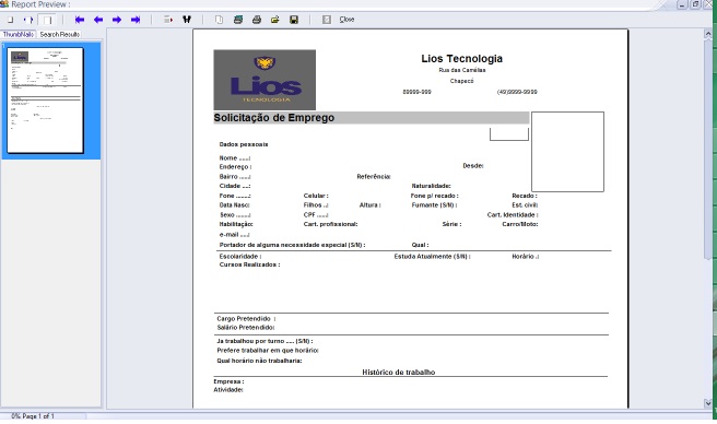 * Impressão do currículo pelo cadastro;